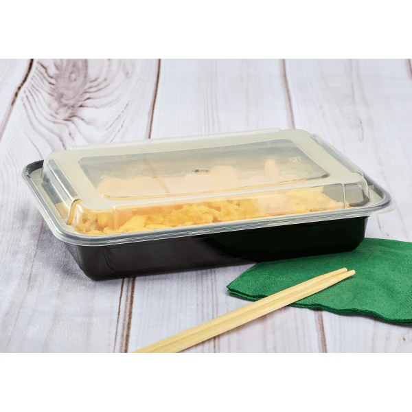 32 oz 2 Compartment Rectangle Black Base Clear Lid Container