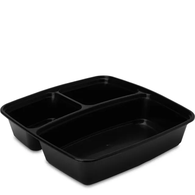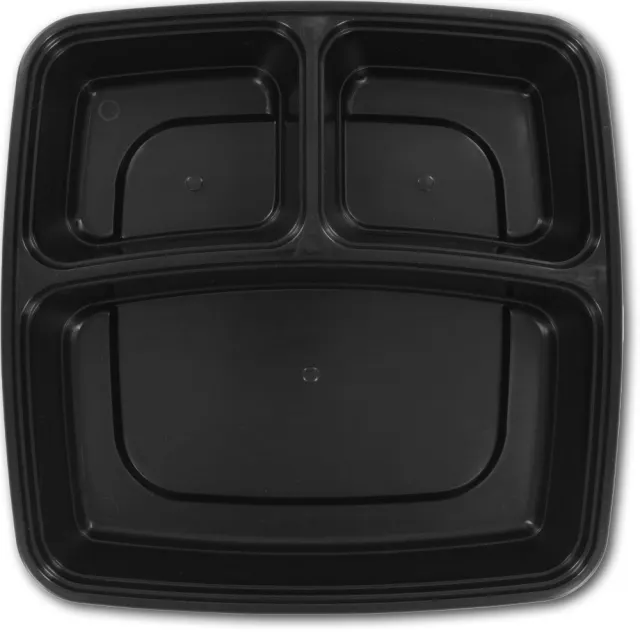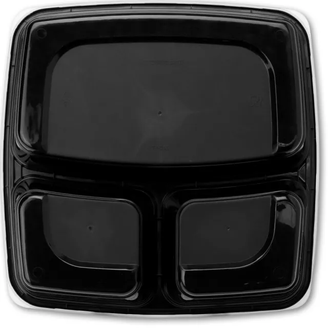 48 oz 3 Compartment Square Black Base Clear lid Container