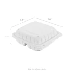 8 Inch 3 compartments Mineral-Filled Hinged Containers are sturdy, eco-friendly food containers made with mineral-filled material for added strength and durability. Featuring a convenient hinged lid, they are perfect for packaging and transporting meals, salads, and snacks with secure closure.The perfect option for any establishment shifting towards environmentally conscious packaging solutions. A great alternative to styrofoam. The secure corner locks are easy to close.