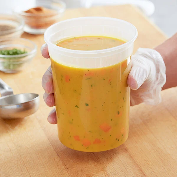 Heavy Duty 32 oz. Microwavable Translucent Plastic Deli Containers are large, durable, clear containers designed for safe storage and reheating of meals. Ideal for delis, catering, and takeout, these microwavable containers provide convenience and strength for hot and cold foods.