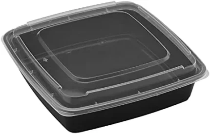 48 oz 3 Compartment Square Black Base Clear lid Container
